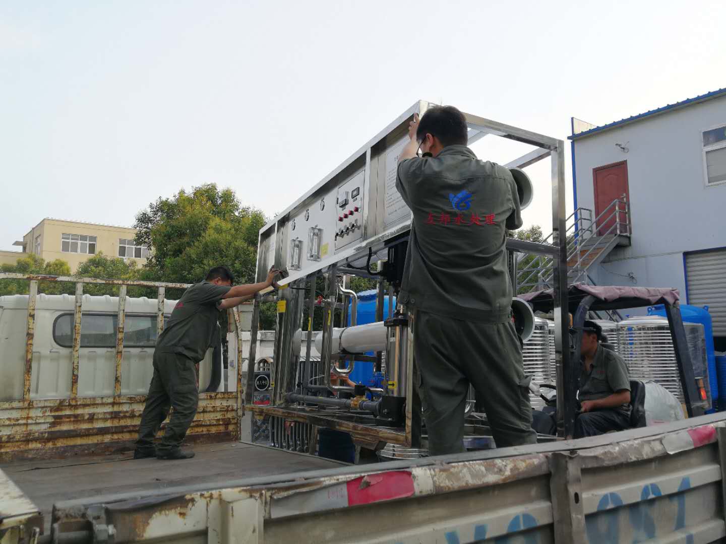 鄭州友邦型號為YB-CJS-005的反滲透純凈水設(shè)備正在裝車發(fā)往山東濟南。