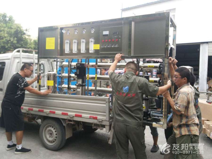 2018年8月6日河南地區1噸雙級全不銹鋼純凈水設備發貨現場