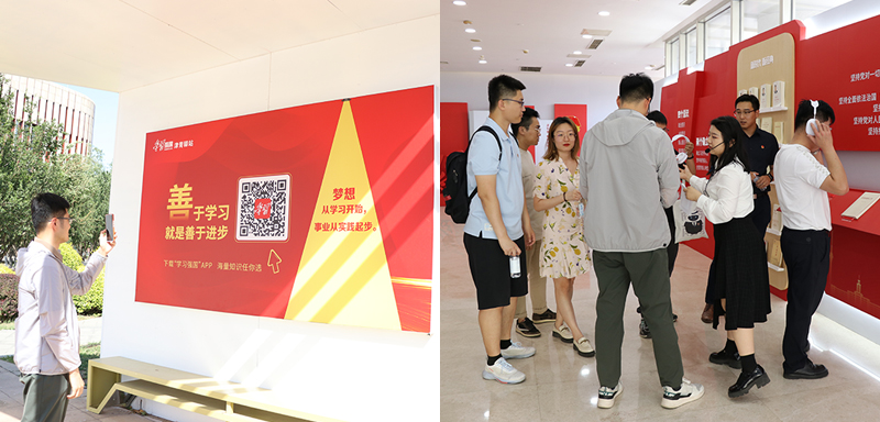 在天津團(tuán)市委宣傳部有關(guān)領(lǐng)導(dǎo)的帶領(lǐng)下,團(tuán)員青年們?cè)谑覂?nèi)體驗(yàn)區(qū)和室外體驗(yàn)區(qū)沉浸式學(xué)習(xí)互動(dòng),實(shí)現(xiàn)了從“云端”學(xué)習(xí)到線(xiàn)下體驗(yàn)的延伸,參觀了學(xué)習(xí)展示、領(lǐng)學(xué)互動(dòng)、“紅色家書(shū)”互動(dòng)墻、“中國(guó)式現(xiàn)代化”隧道、青年打卡以及戶(hù)外學(xué)習(xí)園地等展區(qū),體驗(yàn)現(xiàn)代科技與“讀原著、學(xué)原文、悟原理”有機(jī)結(jié)合的多元化學(xué)習(xí)形態(tài)。