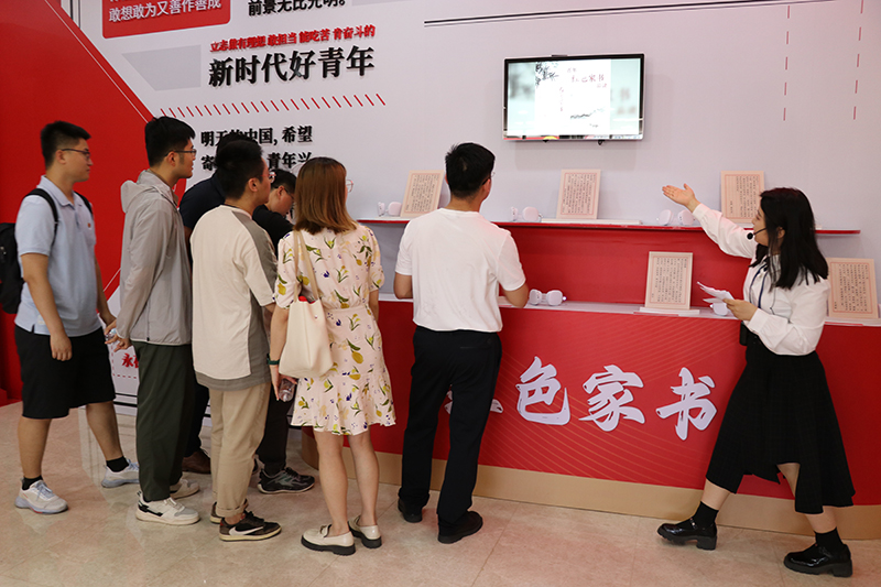 “紅色家書(shū)”互動(dòng)墻前,一封封“紅色家書(shū)”通過(guò)數(shù)字智能互動(dòng)技術(shù)播放,團(tuán)員青年們駐足閱讀,認(rèn)真聆聽(tīng),追憶革命先輩家國(guó)情懷,體悟感受信仰力量。