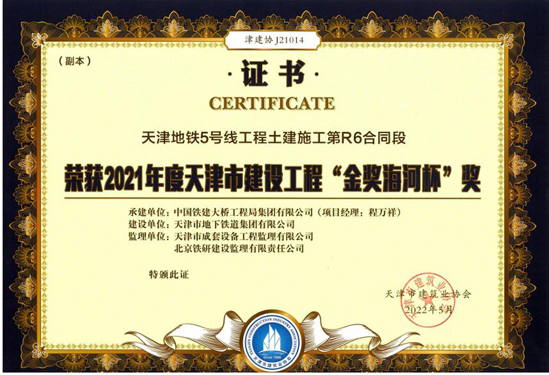 同時,天咨下屬監理公司,宏亞公司也憑借著多年的專業經驗獲得相關部門表彰。監理公司服務的天津地鐵5號線工程土建施工第R6合同段獲得天津市建筑協會頒發的2021年度天津市建設工程“金獎海河杯”獎;宏亞公司的《濱海新區職業教育產教融合發展