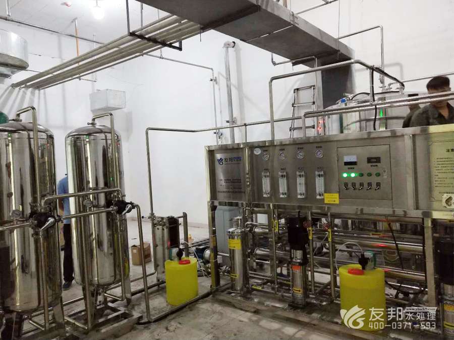 鄧州市全不銹鋼1噸雙級純凈水設備安裝調試現場