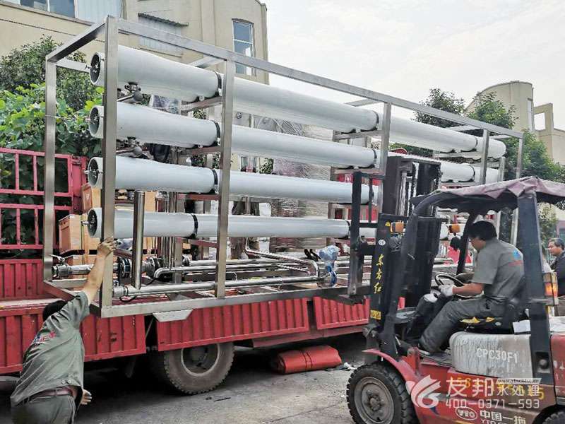 原水→增壓泵(一用一備)→砂過(guò)濾器→炭過(guò)濾器→硬化器(根據(jù)地區(qū)不合選用)→精密過(guò)濾器→兩頭水箱→RO前水泵→精密過(guò)濾器→RO高壓泵→RO反滲透零碎→RO水箱